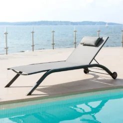 Transat De Jardin Milenio – 5 Positions – Aluminium Et Texaline – Galet / Graphite