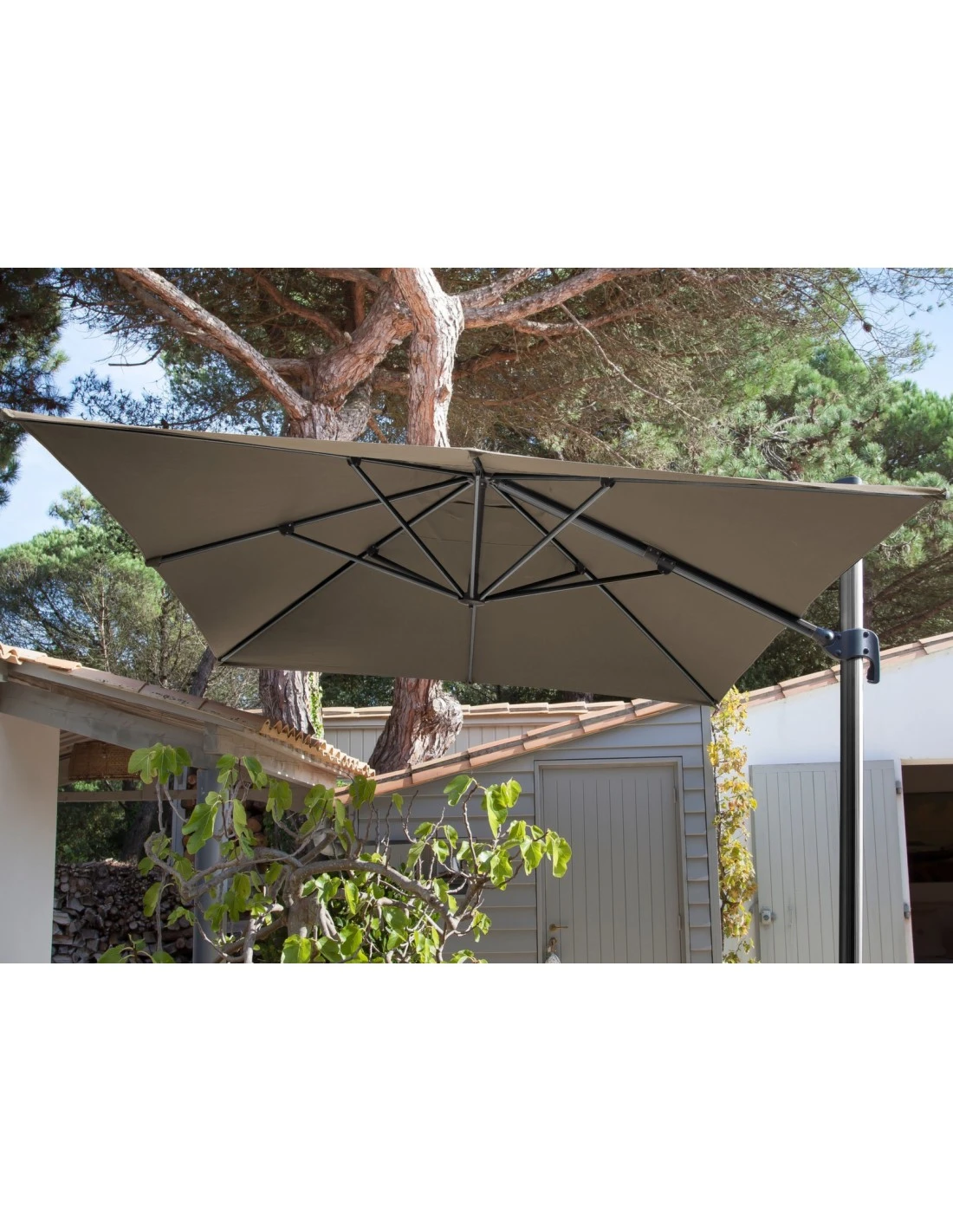 Parasol Déporté 3 X 3 M – Aluminium, Toile Polyester – Taupe